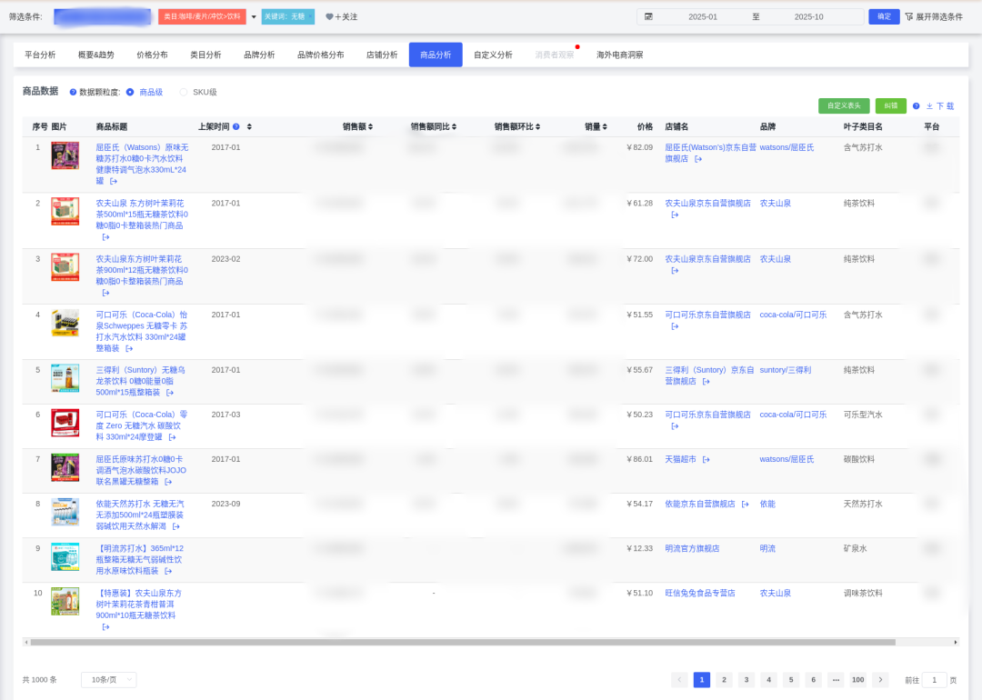 無糖飲料市場呈現(xiàn)顯著增長趨勢,2025年1-10月總銷售額達(dá)31.33億元,同比增長9.86%,總銷量7433萬件,同比增長4.34%。市場供給充足,商品數(shù)達(dá)61,900個,店鋪數(shù)11,067家,競爭激烈。然而,市場從"野蠻生長"進(jìn)入"精耕細(xì)作"階段,無糖茶品類銷售額同比出現(xiàn)下降,標(biāo)志著行業(yè)結(jié)構(gòu)性調(diào)整的開始。